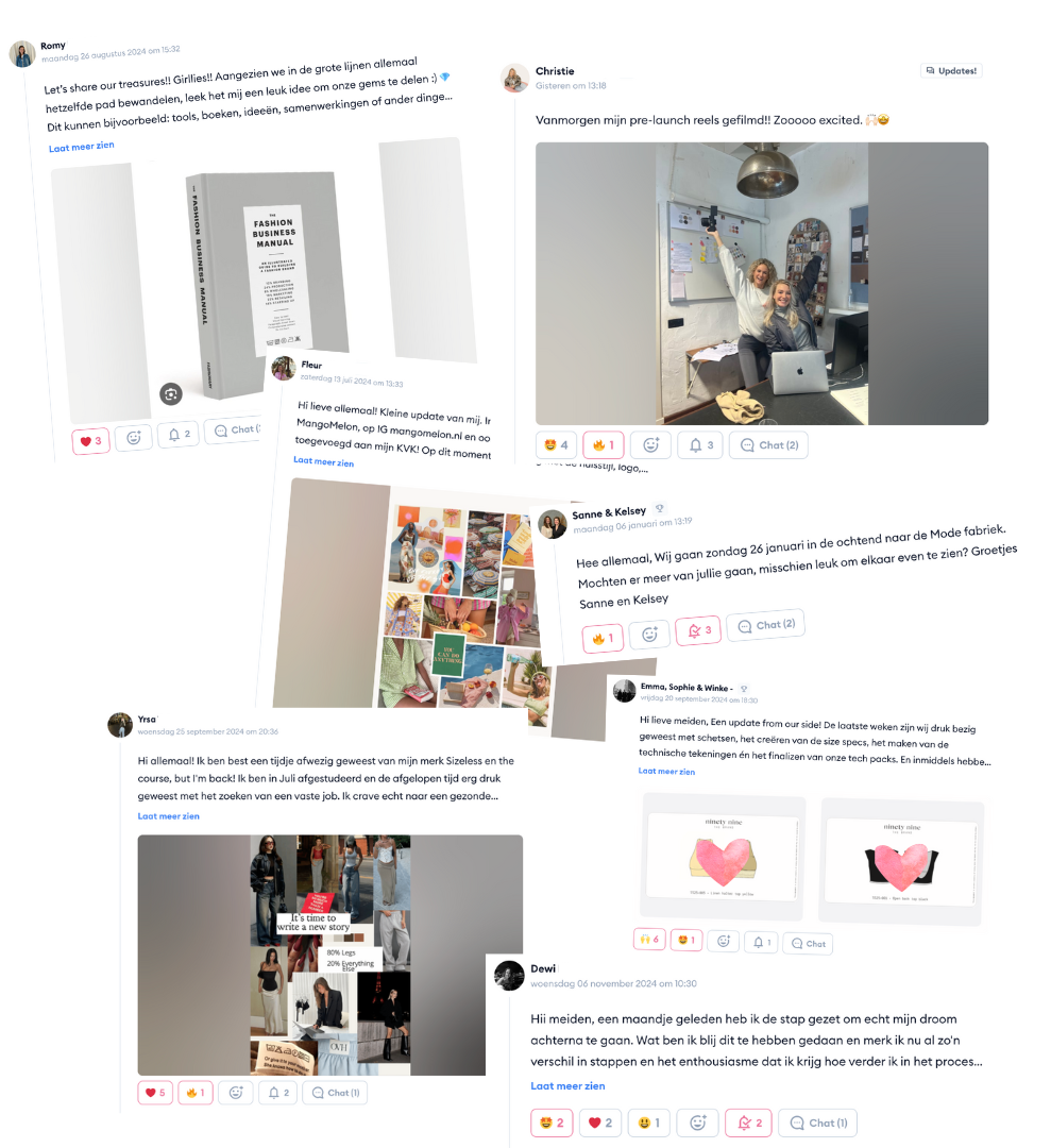We organiseren toffe (online en offline) events waar jij altijd welkom bent! Denk aan co-work days met de andere founders, community borrels maar ook aan online Masterclasses als extra knowledge van experts uit het modevakgebied.