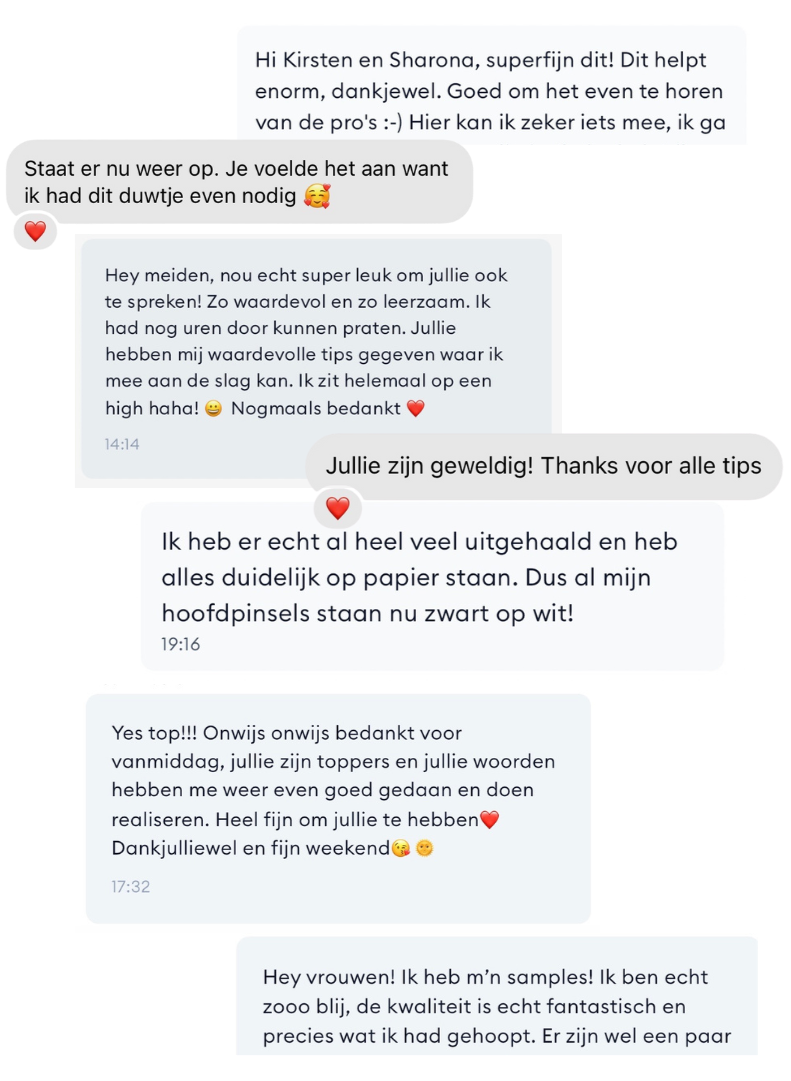Via de exclusieve ledenkanalen heb jij de mogelijkheid om dagelijks je vragen in te sturen en kun je op 2-weekdagen live met ons persoonlijk chatten. Zo krijg je altijd al je vragen beantwoord en zorg je ervoor dat je met nieuwe inzichten en actieplannen verder kunt werken.